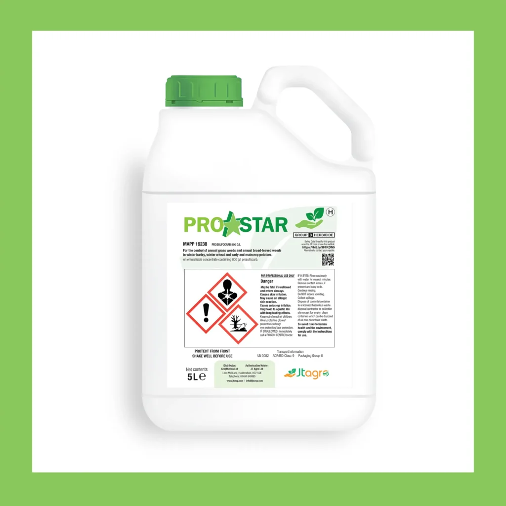 For the control of annual grass weeds and annual broad-leaved weeds in winter barley, winter wheat and early and maincrop potatoes. An emulsifiable concentrate containing 800 g/l prosulfocarb.